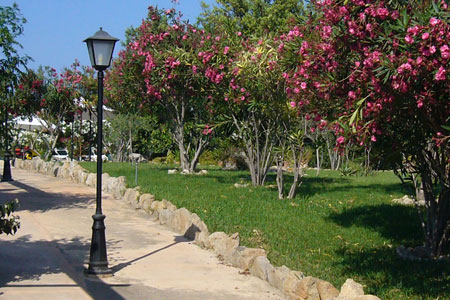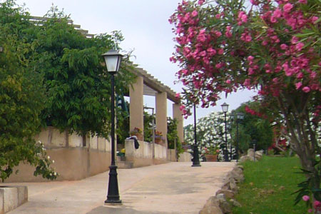 befinden sich alle nebeneinenander, ebenerdig, je circa 55 m² mit eigenem Sitzplatz und Blick auf den romantischen Palmen-Garten.